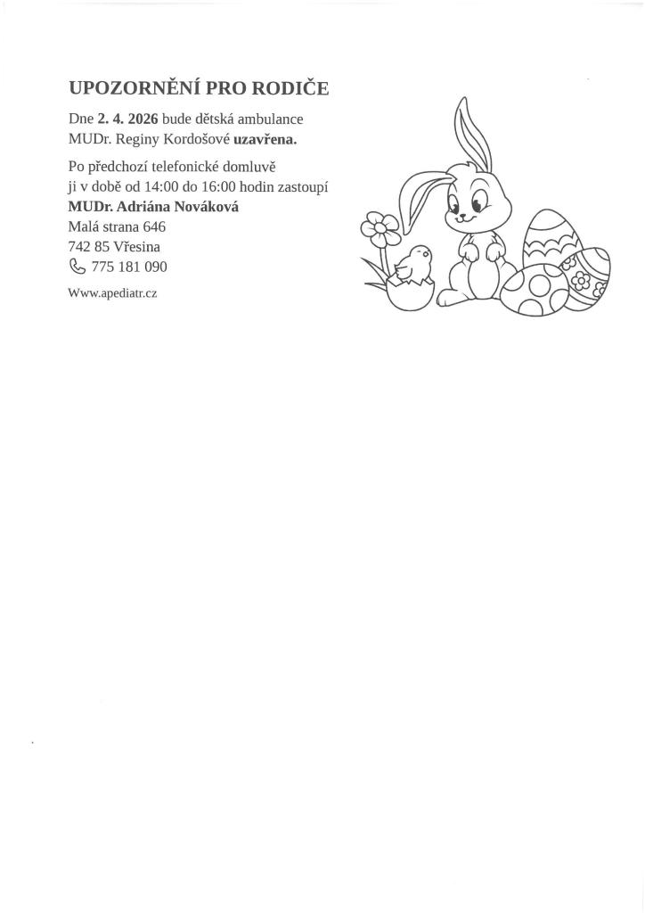 MUDr. REGINA KORDOŠOVÁ - DOVOLENÁ 2. 4. 2026